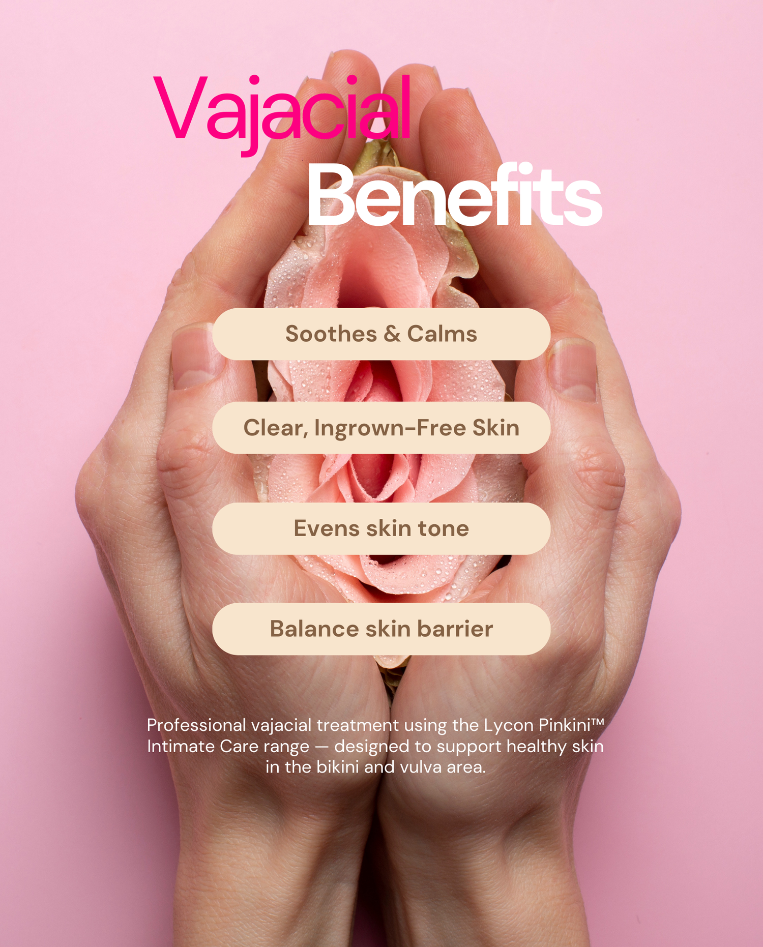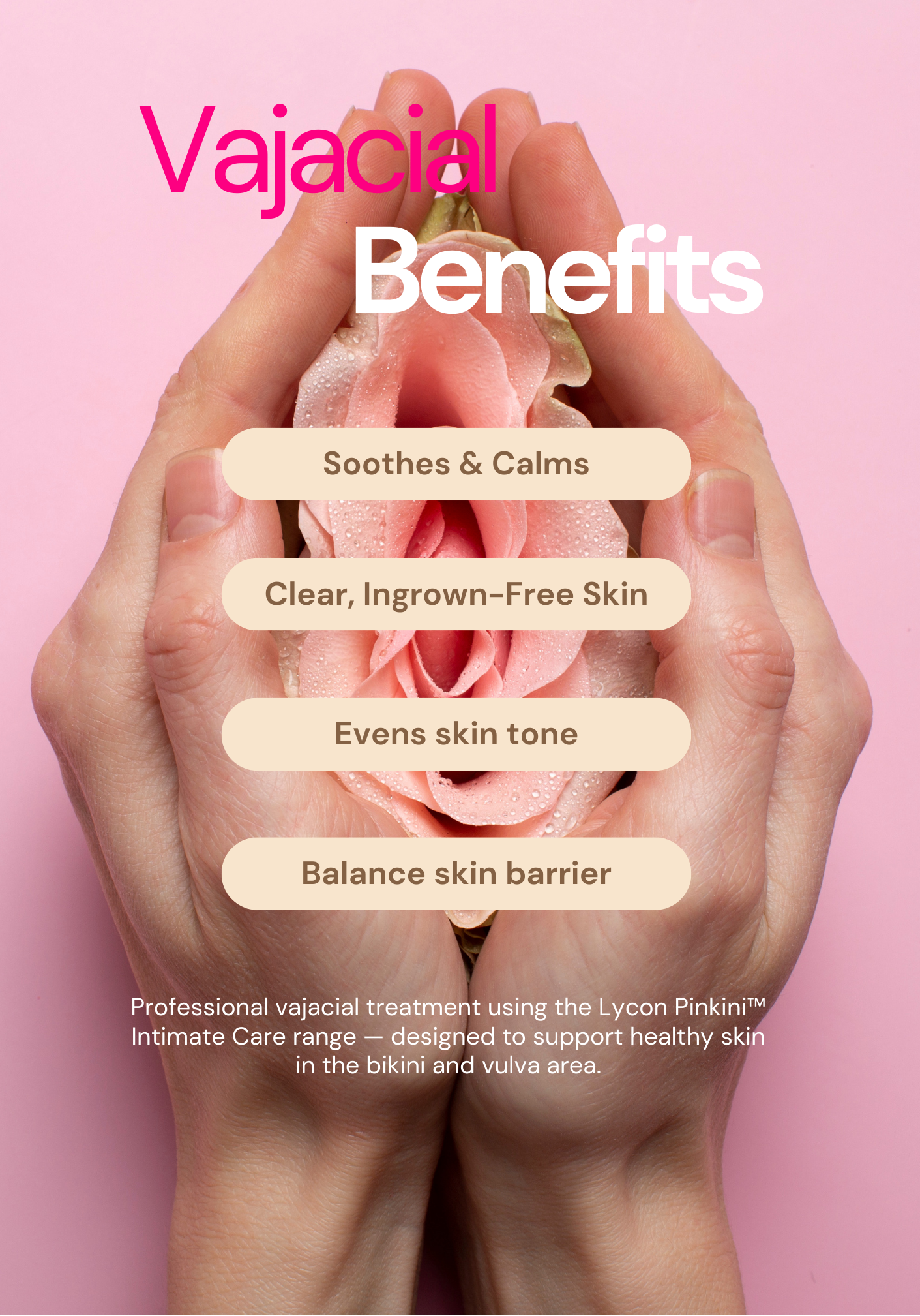 This includes a full professional Vajacial treatment performed using the Lycon Pinkini™ intimate care range, designed to support skin health and help reduce recurring ingrown hairs.